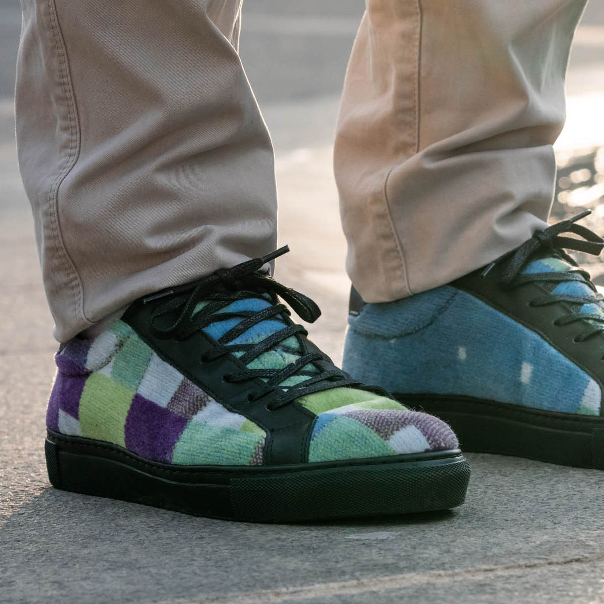 Nos sneakers sont fabriquées artisanalement avec des matériaux surcyclés.