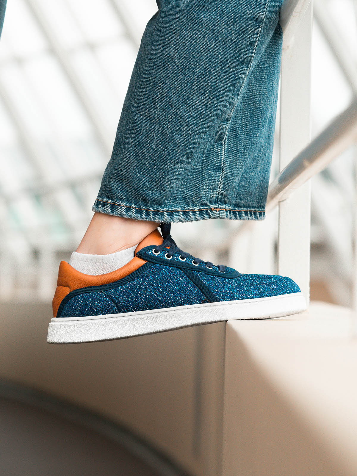 Blue jacquard, removable insole, leather interior and heel, Margom® sole.