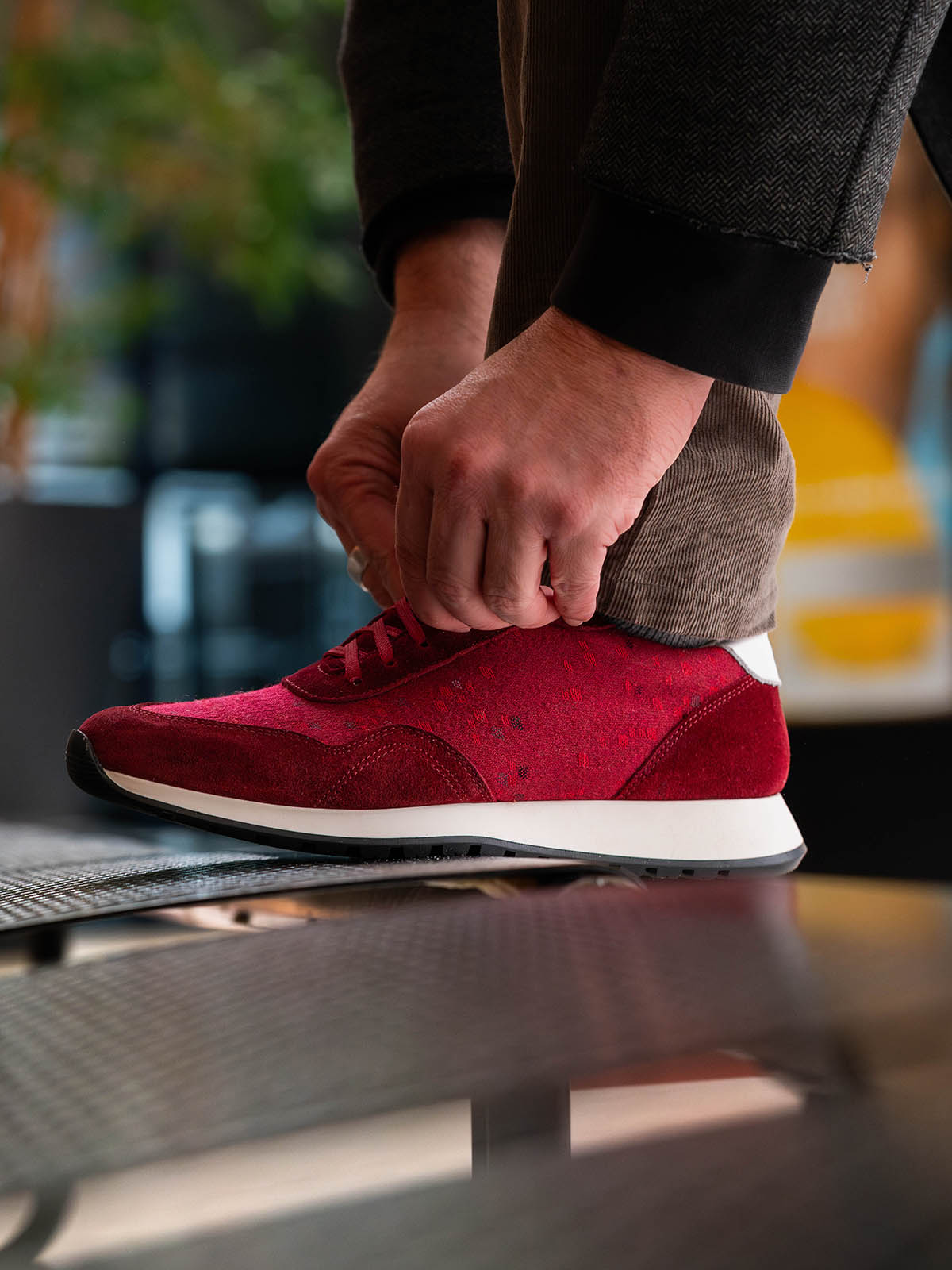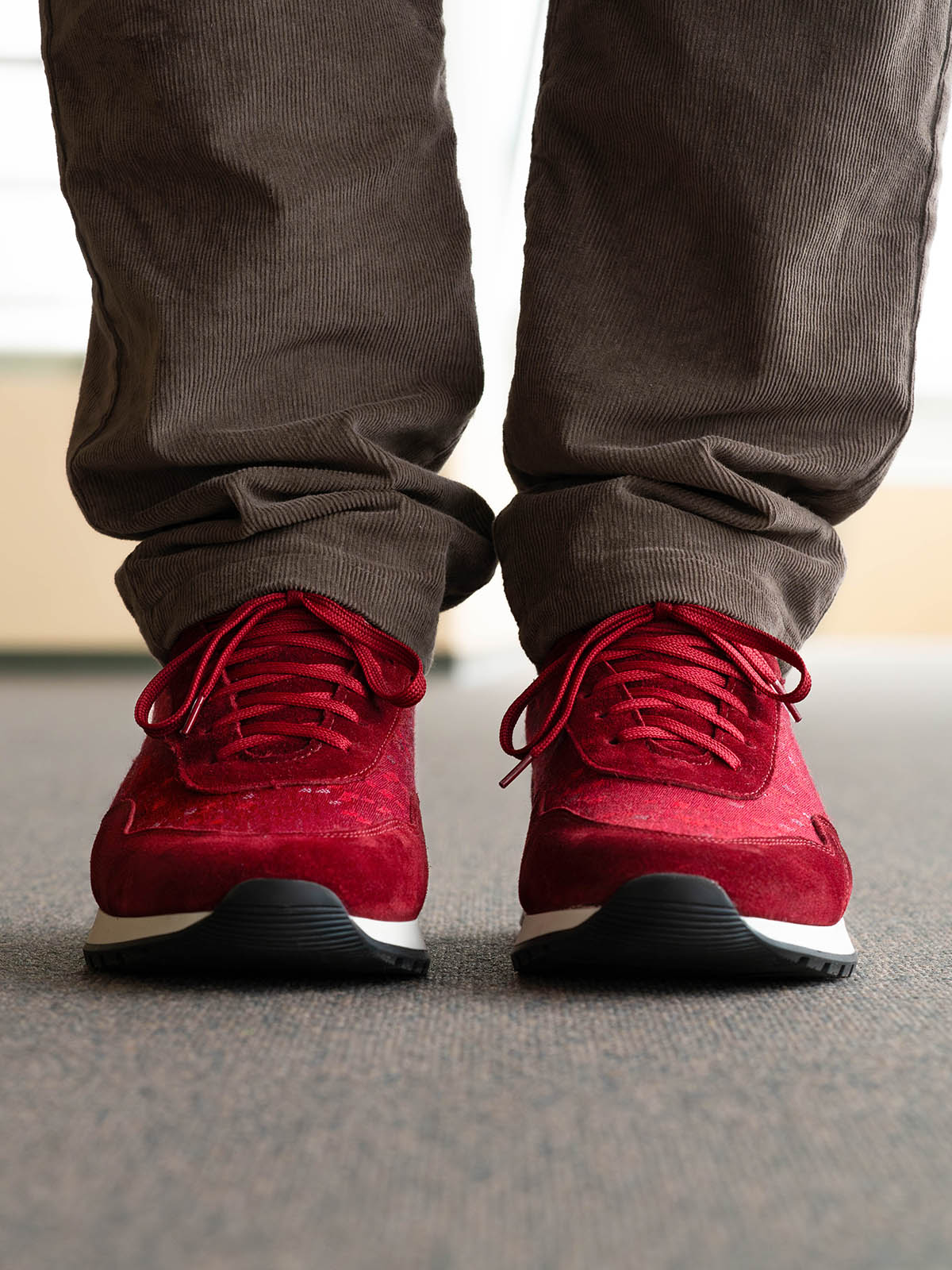 Nos Runners SLP A350 INDIANA RED utilisent le tissu surcyclé à l'endroit des sièges d'aéronefs A350.
