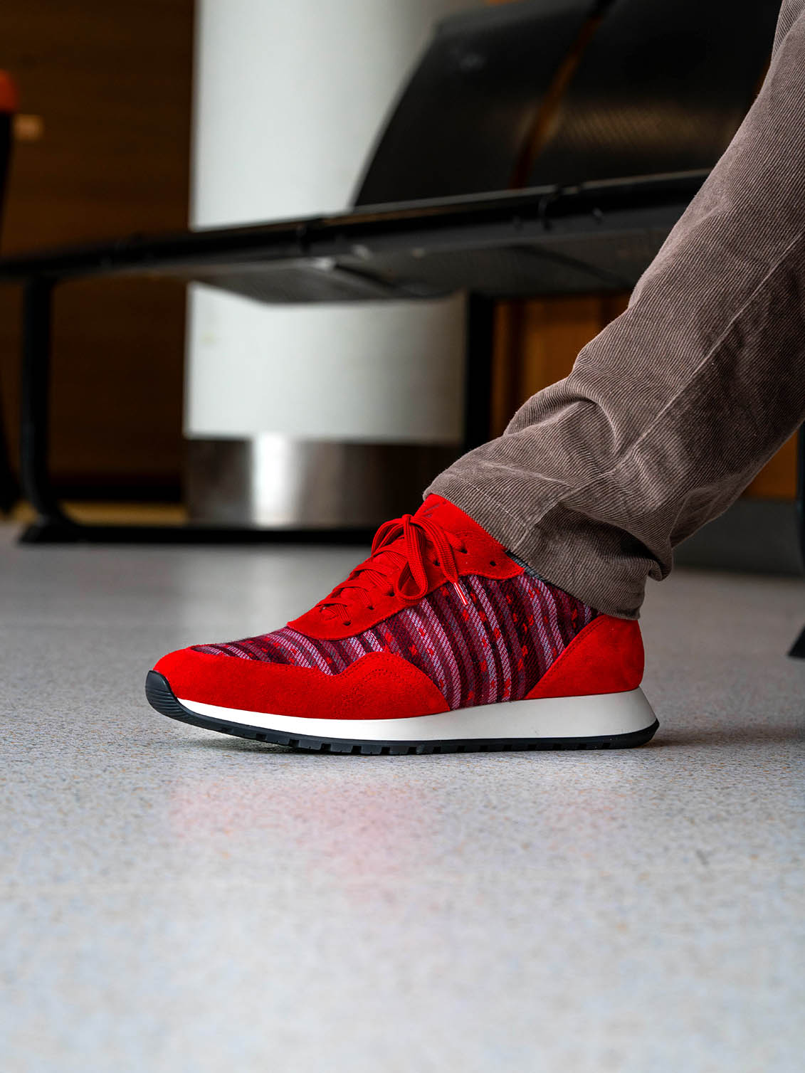 Nos Runners SLP A350 INDIANA utilisent le tissu surcyclé à l'envers des sièges d'aéronefs A350.